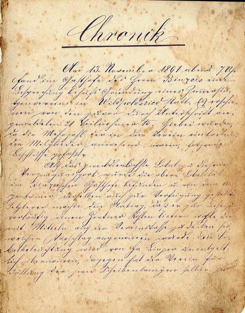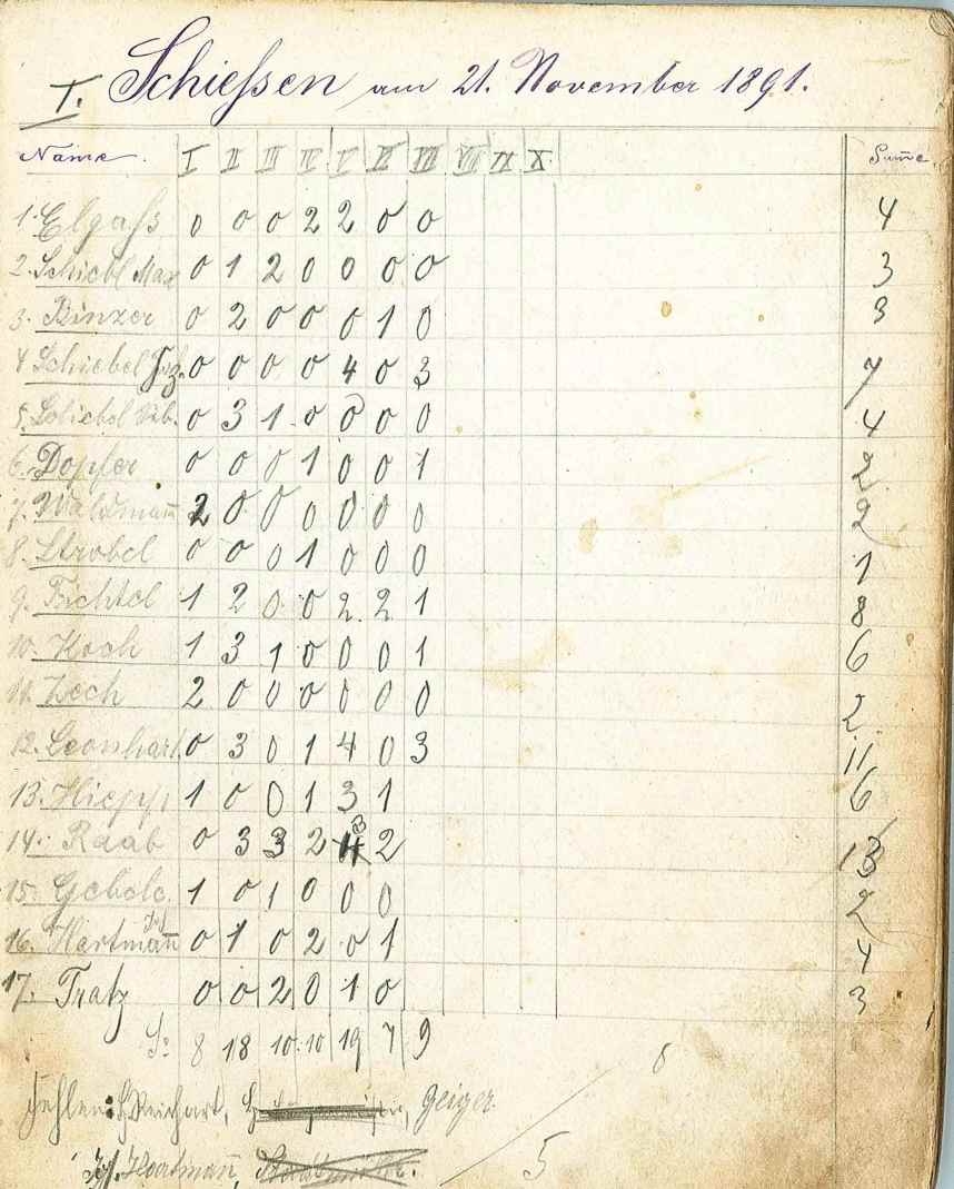 Es war vor über 100 Jahren, am 13. November 1891, da haben sich 15 Männer zusammengetan, um einen Zimmerstutzenverein zu gründen. Hauptinitiator war der königliche Bahnadjunkt Georg Raab. Er berief die Gründungsversammlung in den Gasthof "Binser" (heute "Adler") ein, weil man ihn - besonders die oberen Lokalitäten - als am besten geeignet zur Ausübung des Schießsports befunden hatte. Zum Gründungsschützenmeister wählte man Georg Raab, Zweiter Vorstand wurde H. Hipp aus Eufnach, Kassier wurde Hilfslehrer Waldmann.
